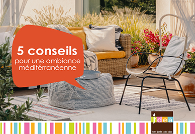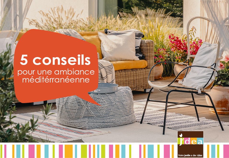 Pour profiter pleinement de l’été, adoptez le style méditerranéen en choisissant des plantes adéquates et une décoration en harmonie pour apporter une touche ensoleillée à votre jardin, balcon et terrasse. Installez de belles plantes aux floraisons estivales généreuses adaptées aux expositions ensoleillées et résistantes à la chaleur. Optez pour des végétaux flamboyants : Lauriers roses, Bougainvilliers, Dipladénias, Yuccas ou encore Oliviers, Citronniers et Lavandes… J’DEA vous donne des conseils pour créer une ambiance méditerranéenne dans votre jardin.