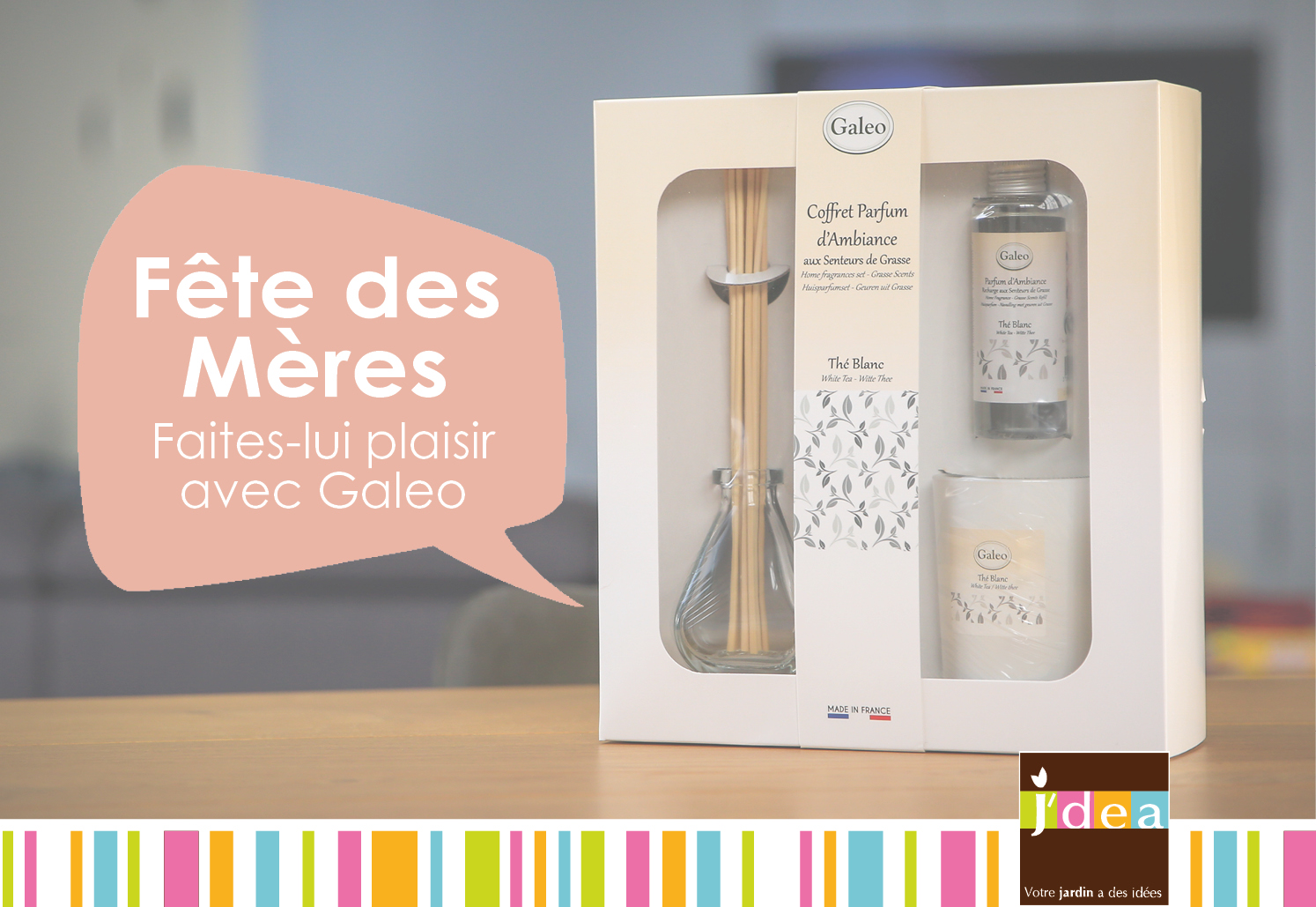 Découvrez les coffrets de parfum d’ambiance Galéo. Différentes senteurs sont à retrouver dans votre jardinerie. Entièrement ‘Made in France’. Les coffrets contiennent :