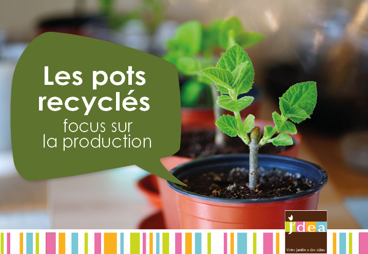 La production des plantes est une grande consommatrice de pots. A l’origine vendues en racines nues, les plantes ont progressivement été commercialisées dans des conteneurs de cultures ce qui a permis de les vendre dans de bonnes conditions toute l’année. Aujourd’hui conscient, que ce mode de production est consommateur de beaucoup de ressources, la profession utilise de plus en plus de contenants issus de matières recyclées. D’où l’apparition des pots gris ou taupe dont la couleur est due au mélange de différentes sources de plastiques recyclés. Aujourd’hui les fabricants de pots mettent en place une filière de recyclage* qui autorise au même titre que les bouteilles d’eau, de mettre les pots usagés dans la poubelle jaune. Ils sont ainsi transformés et réutilisés pour la fabrication de nouveaux pots. (* renseignez-vous auprès de votre centre de tri).