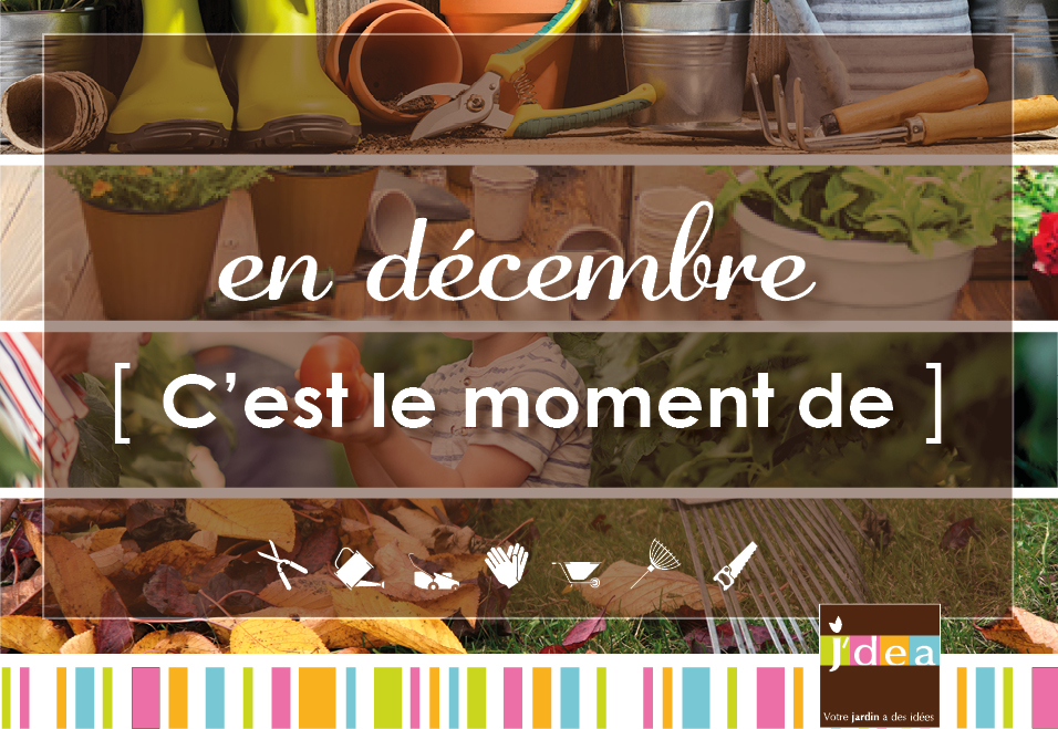 En Décembre, c’est le moment de rentrer vos pots pour qu’ils soient à l’abri des intempéries. Par temps doux, effectuez la taille de vos pommiers et poiriers. Si vous avez de nouveaux arbres fruitiers et petits fruits à planter, c’est le moment de s’y atteler. Profitez-en également pour nettoyer, entretenir et rénover vos outils. Surveillez les protections hivernales de vos plantes et continuez de ramasser les feuilles mortes.