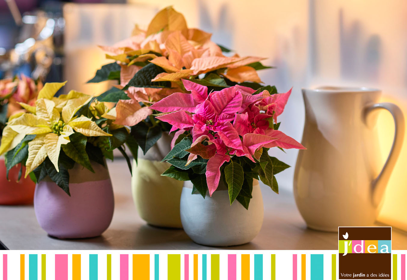 • Le Poinsettia existe en rouge et en blanc, mais aussi en crème, bordeaux, jaune citron, rose, saumon et violet.