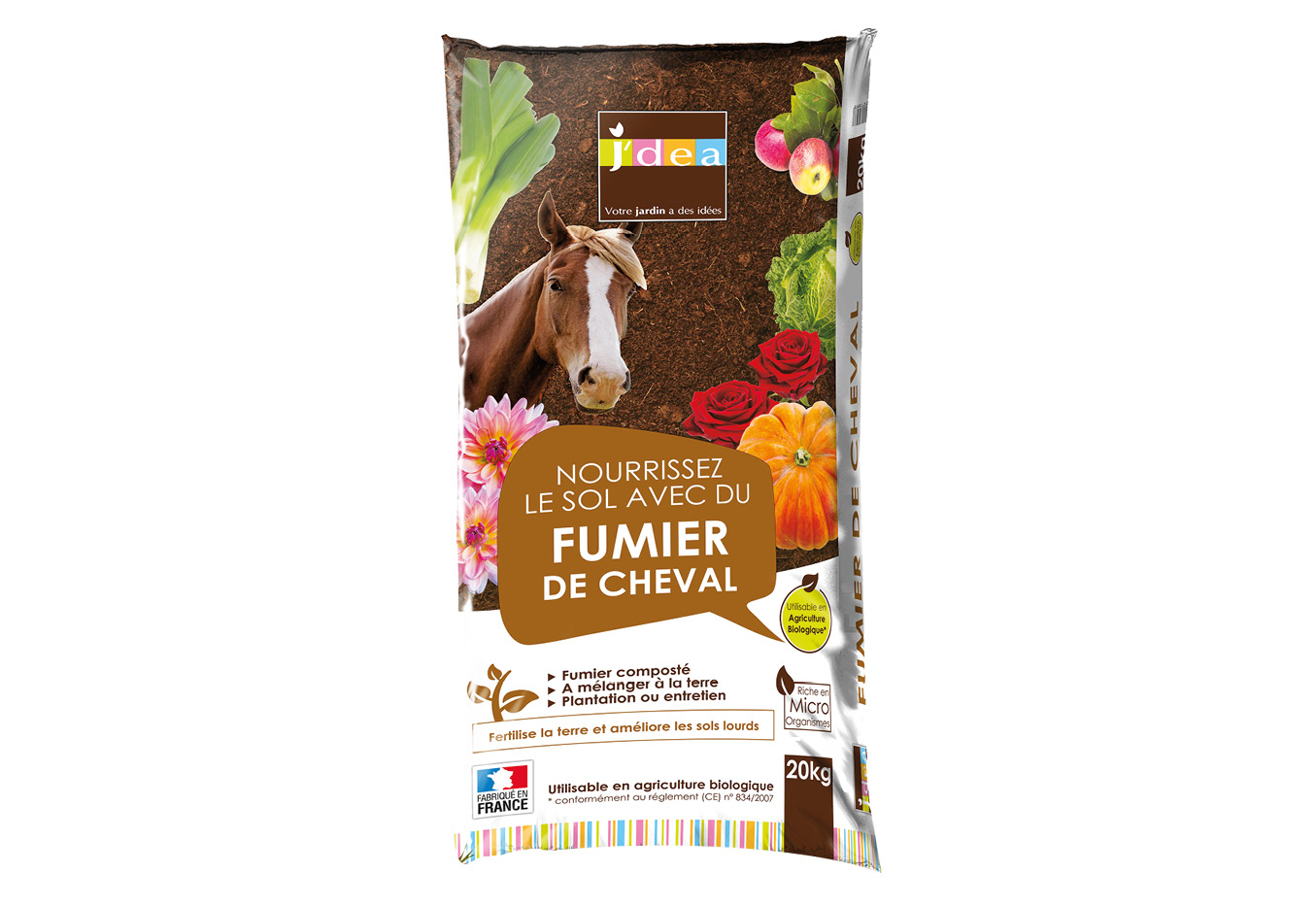 FUMIER DE CHEVAL 20 KG - J'DEA Fabriqué en France - Utilisable en Agriculture Biologique Fumier composté A mélanger à la terre Plantation ou entretien